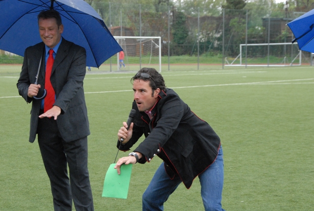 Bevor Sportmoderator und Platzsprecher Philipp Pertl den Nationalratspräsidenten Fritz Neugebauer gemeinsam mit den Sektionschefs des Bundesministeriums zum Ankick bat, wurde das Publikum noch frisch fröhlich eingestimmt. „Immer wieder! Immer wieder …“ ertönte es. In der zweiten Hälfte machte der Bundeskanzler den Ankick und die Stimmung war trotz Regenwetter ausgezeichnet. P. Georg Sporschill konnte sich besonders freuen, denn es kam wieder eine stolze Spendensumme für CONCORDIA zusammen und dem Moderator schrieb er nach der Moderation und Stimmungsmache für CONCORDIA „Für Philipp Pertl den Botschafter! P. Georg Sporschill“ in sein Buch „Die zweite Meile“. Übrigens das aktuellste Buch des Jesuitenpaters über ein Leben mit Hoffnungskindern.